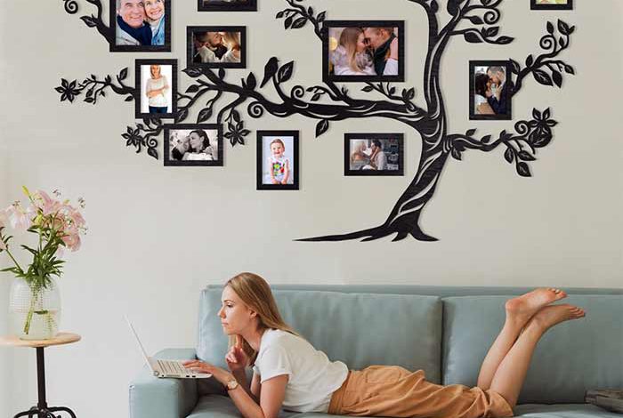 - نکته: برای چیدمان نامتقارن، قابها را ابتدا روی زمین بچینید تا ترکیب دلخواهتان را پیدا کنید.